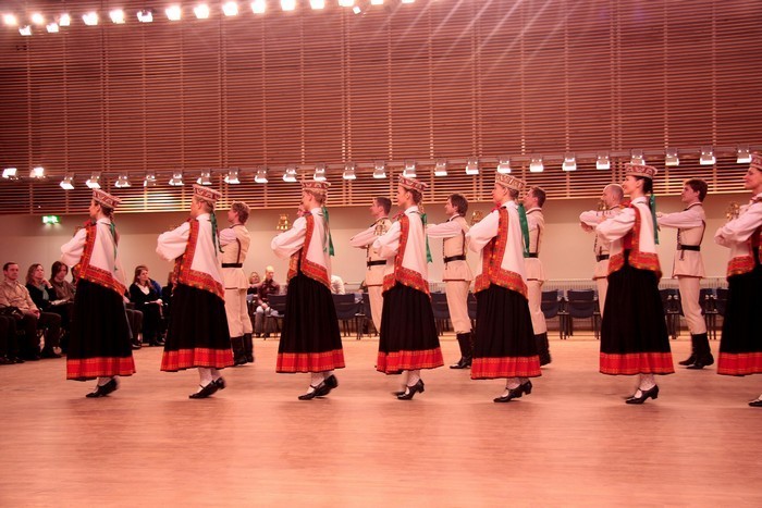 Riia rahvatantsuansambel Vektors oma oskusi TTÜ aulas näitamas 29. märts 2008