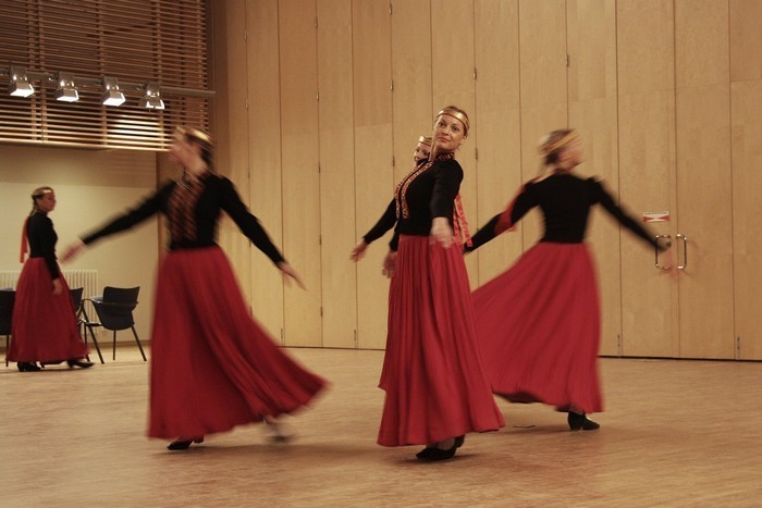 Riia rahvatantsuansambel Vektors oma oskusi TTÜ aulas näitamas 29. märts 2008